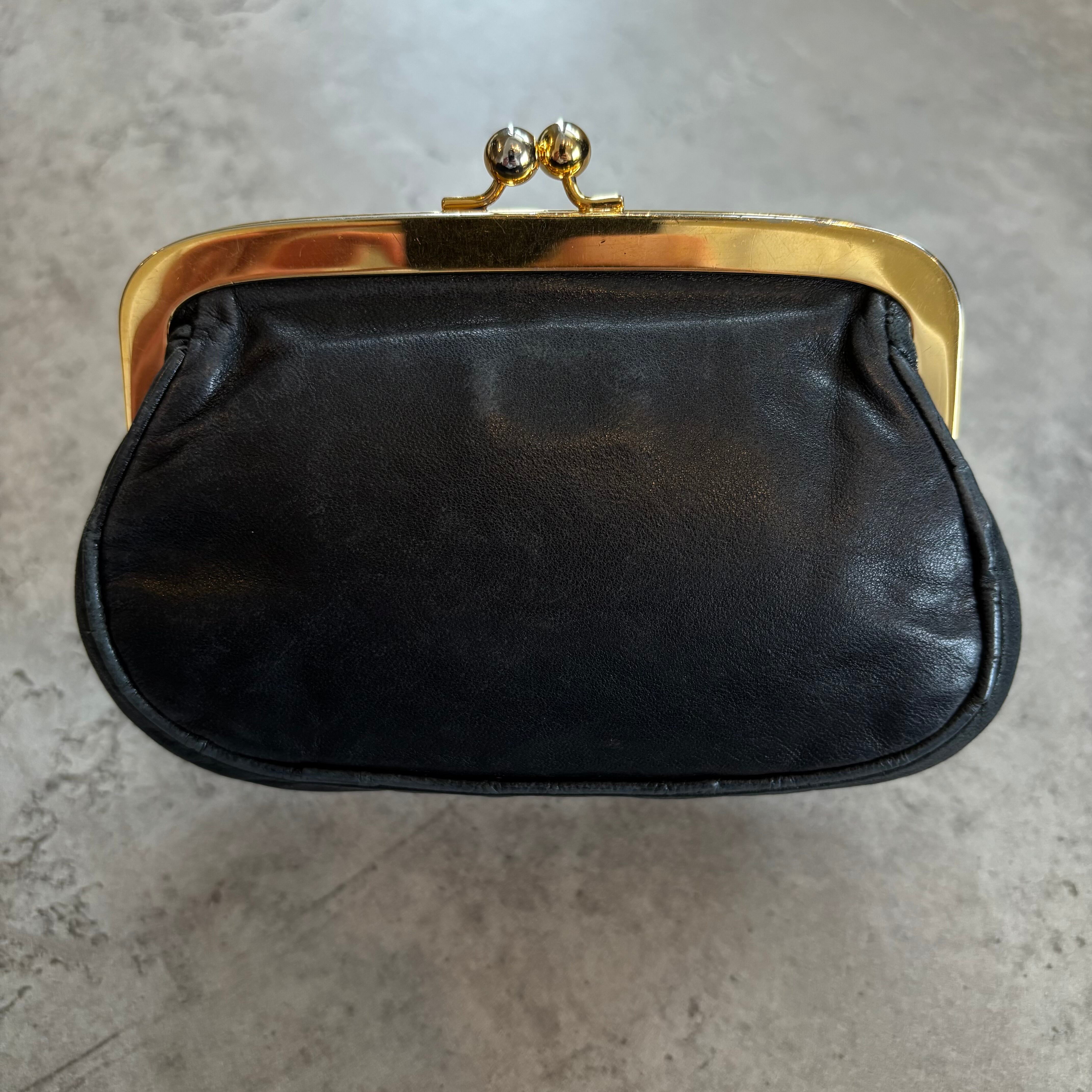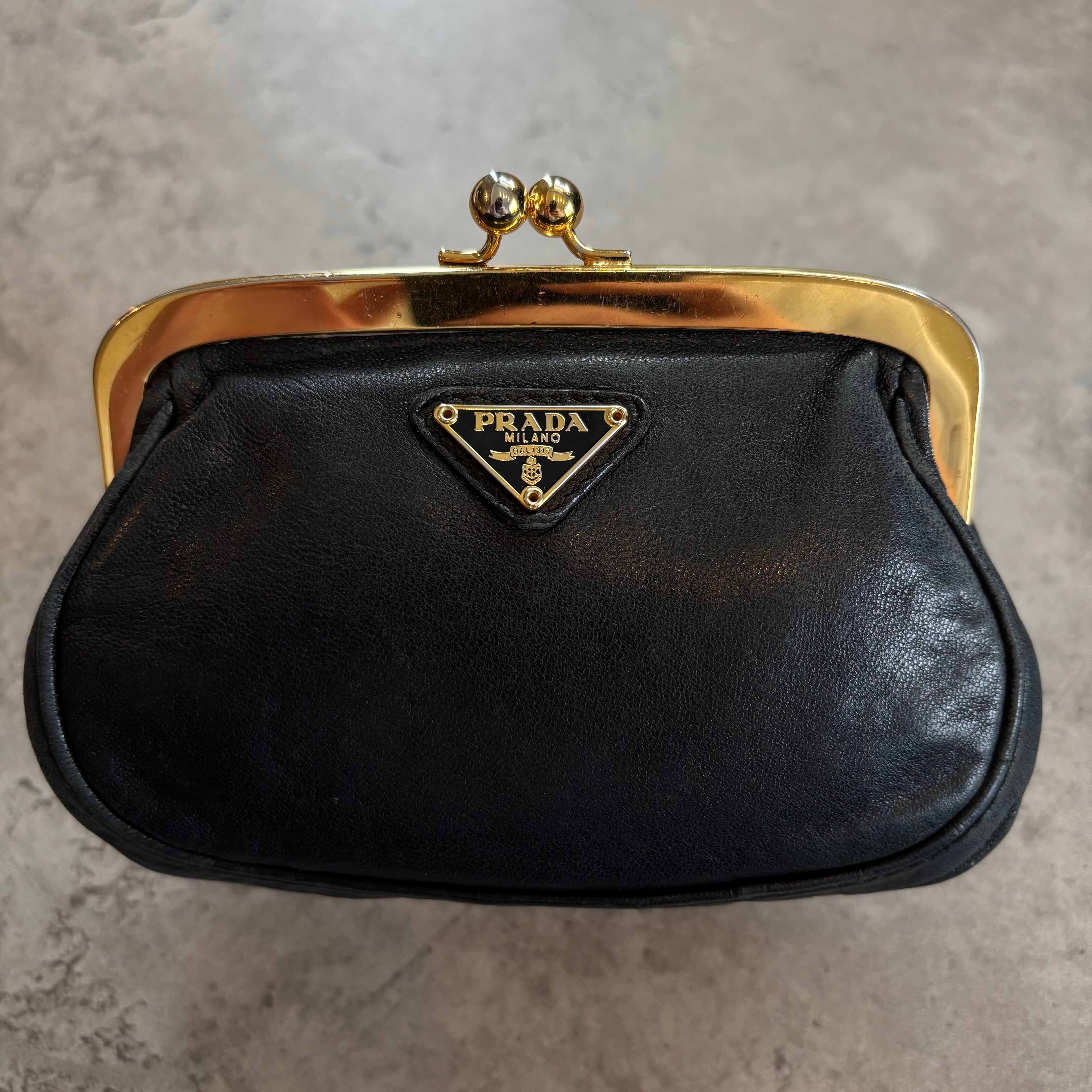 PRADA がま口 コインケース ポーチ ブラック レザー